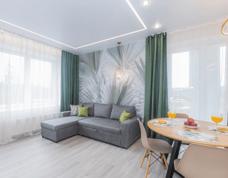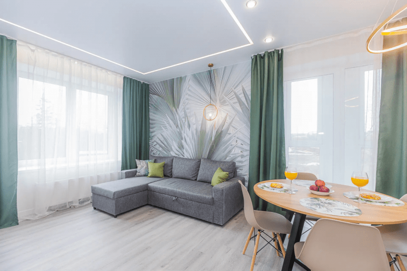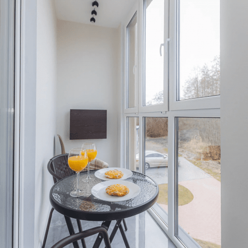 Элегантные апартаменты с дизайнерским интерьером размещены в новом жилом комплексе с благоустроенными дворами. Уютная отдельная спальня оснащена большой кроватью на двоих и вместительным шкафом. В кухне-гостиной имеются пространство для приготовления блюд, обеденная группа, диван. На видовом балконе обустроена компактная лаундж-зона. Санузел оборудован душевой, стиральной машиной. Для гостей предусмотрено подключение к Wi-Fi.