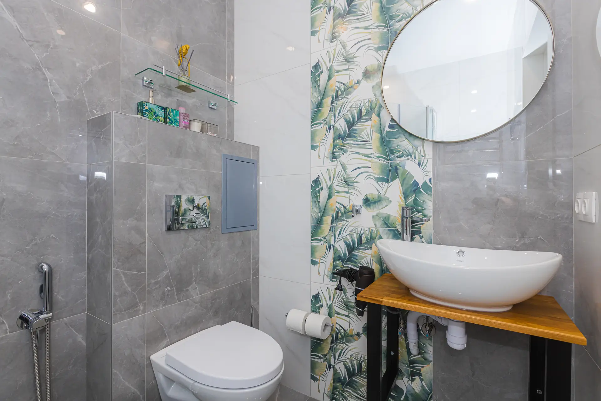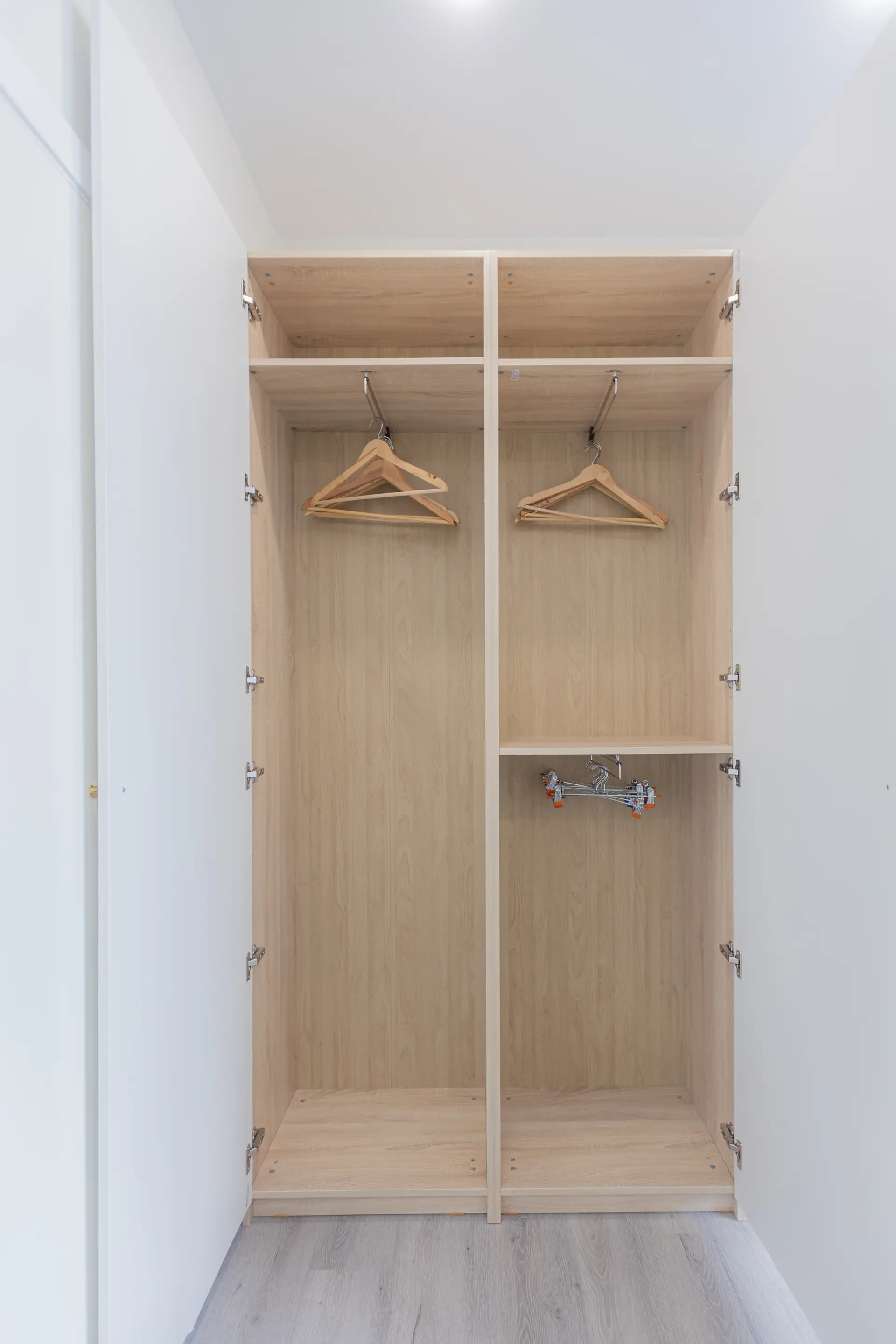 - Мебель: вешалка, диван, зеркало, кровать двуспальная, прикроватные тумбочки, стол, стулья, шкаф